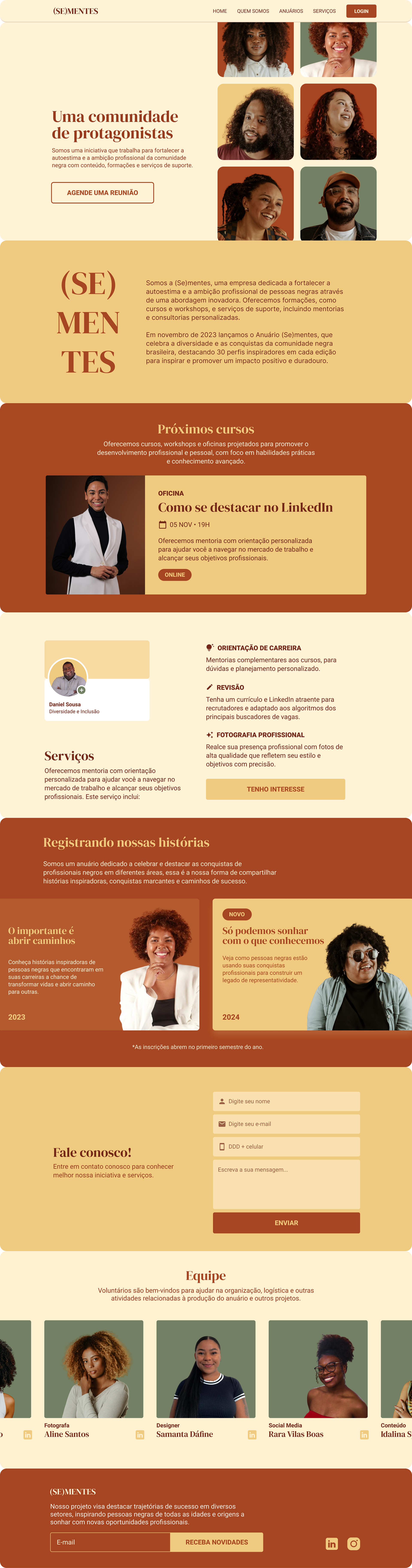 O (Se)mentes é uma iniciativa dedicada a fortalecer a autoestima e a ambição profissional da comunidade negra, oferecendo formações, conteúdos e suporte direcionado. Tive a oportunidade de colaborar com o projeto por meio do desenvolvimento do key visual e da criação da landing page, alinhando identidade e propósito.