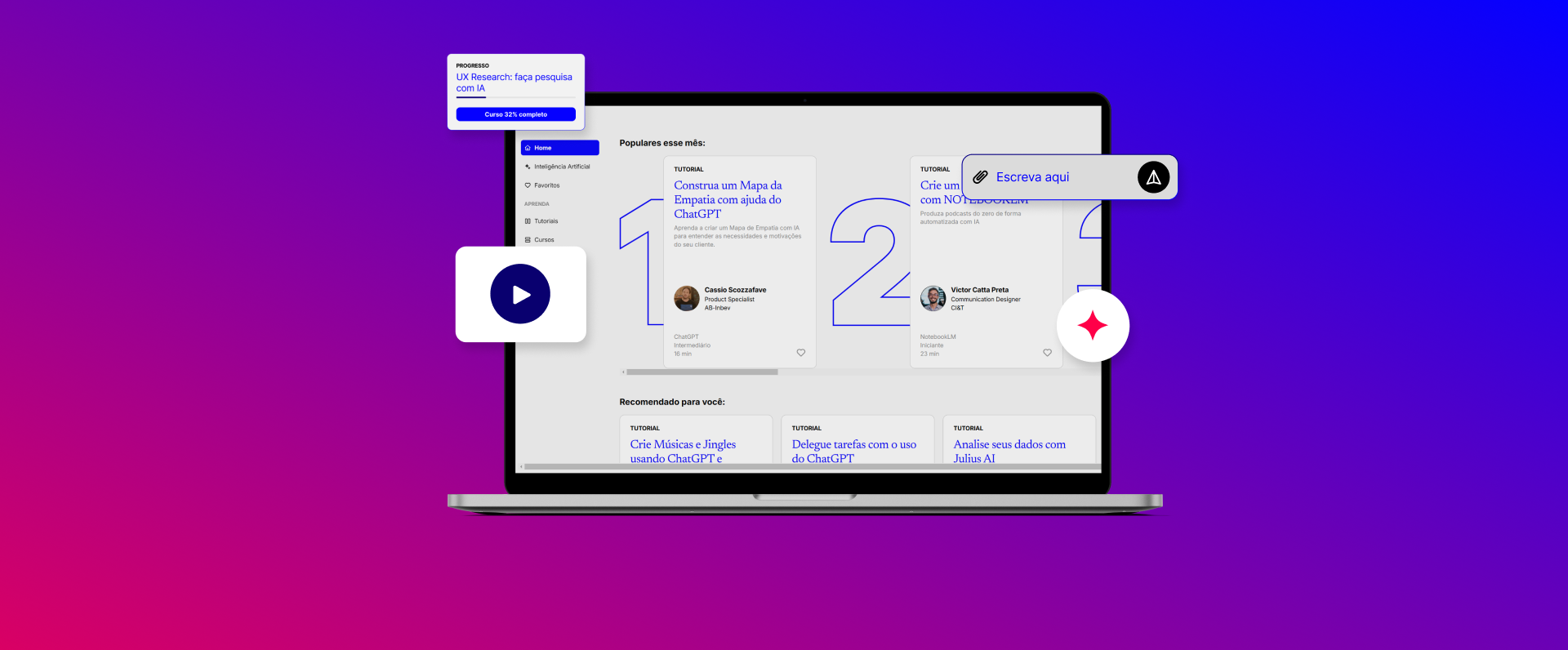 Desenvolvimento da desdobramento visual para um compilado de aulas ao vivo voltado a profissionais de produtos digitais, com foco em inteligência artificial. A proposta visual buscou traduzir dinamismo, inovação e clareza, alinhando o conteúdo técnico a uma linguagem acessível e atrativa.